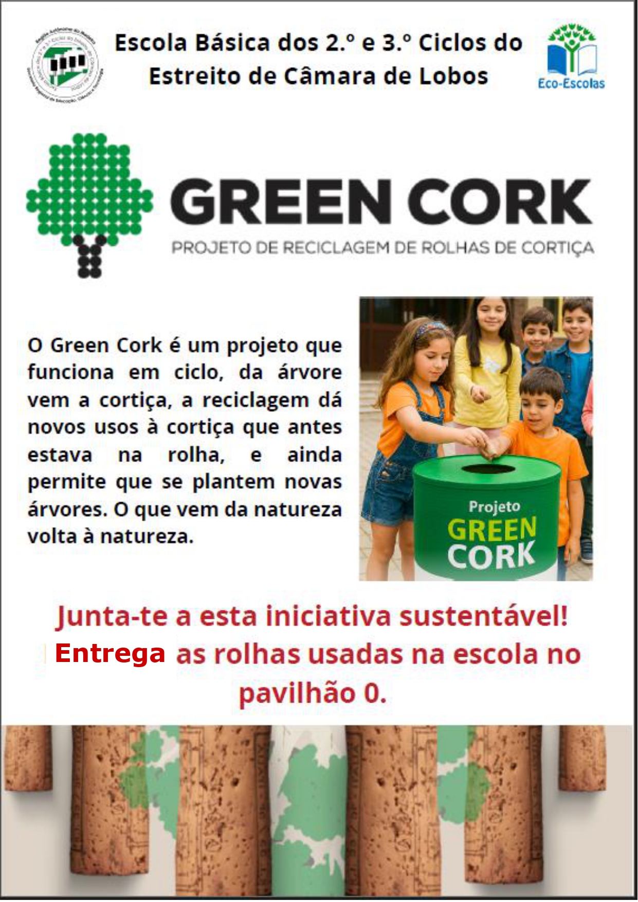 - Projeto Green Cork – A recolha de rolhas de cortiça para reciclagem transforma-se em reflorestação com espécies autóctones.