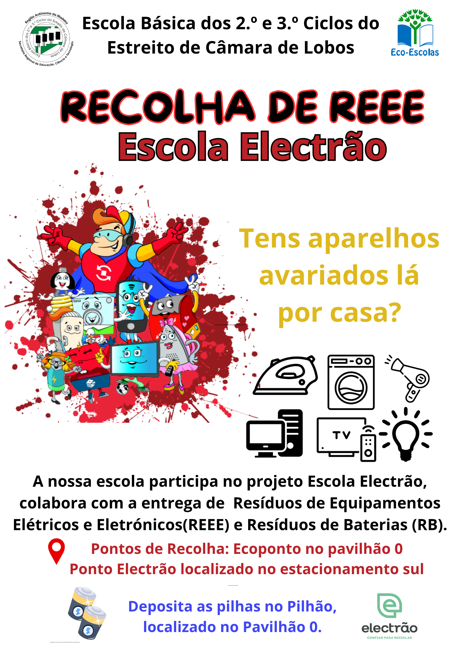 - Projeto Escola Electrão – A nossa escola integra a rede Onde Reciclar, servindo como ponto de recolha de REEE (Resíduos de Equipamentos Elétricos e Eletrónicos). Podem ser entregues pequenos equipamentos avariados (eletrodomésticos, telemóveis, pilhas, baterias e lâmpadas).