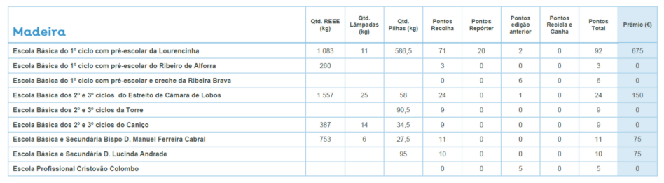 Na edição de 2024/2025, participaram perto de 900 escolas em todo o país, reunindo um total de 458 toneladas de lâmpadas, pilhas e equipamentos elétricos usados para reciclagem. As escolas com melhores resultados receberão vales no valor global de 47 850€, destinados à compra de novos equipamentos.