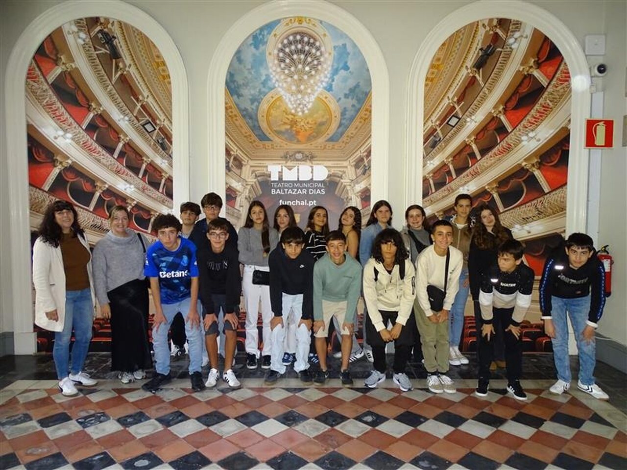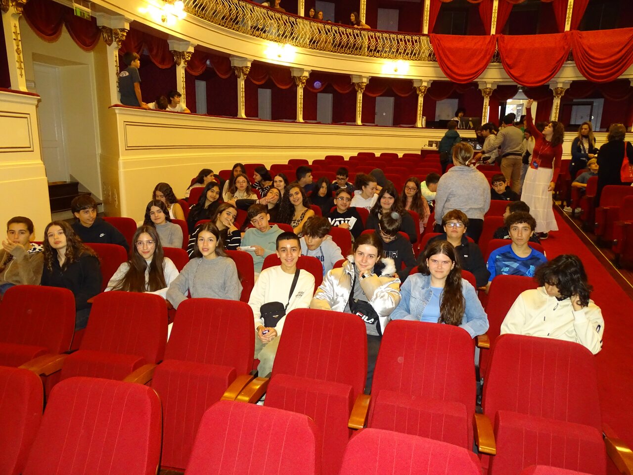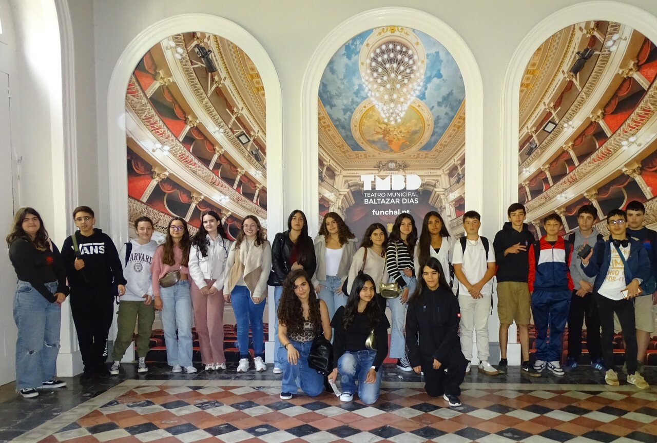 Quando o autocarro estacionou diante do Teatro Municipal Baltazar Dias, o silêncio durou uns segundos — um silêncio de espanto! O edifício, impressionante e cheio de charme antigo, ergueu-se diante de nós como se nos convidasse a entrar num outro tempo. “Uau, parece um palácio!”, disse uma das nossas colegas de turma. Outros não perderam tempo e começaram logo a tirar fotos, como quem tenta registar a magia antes que ela escape. Confirmados os lugares na plateia, aguardamos pelo início do espetáculo. Quando as luzes se apagaram, então começou a viagem.