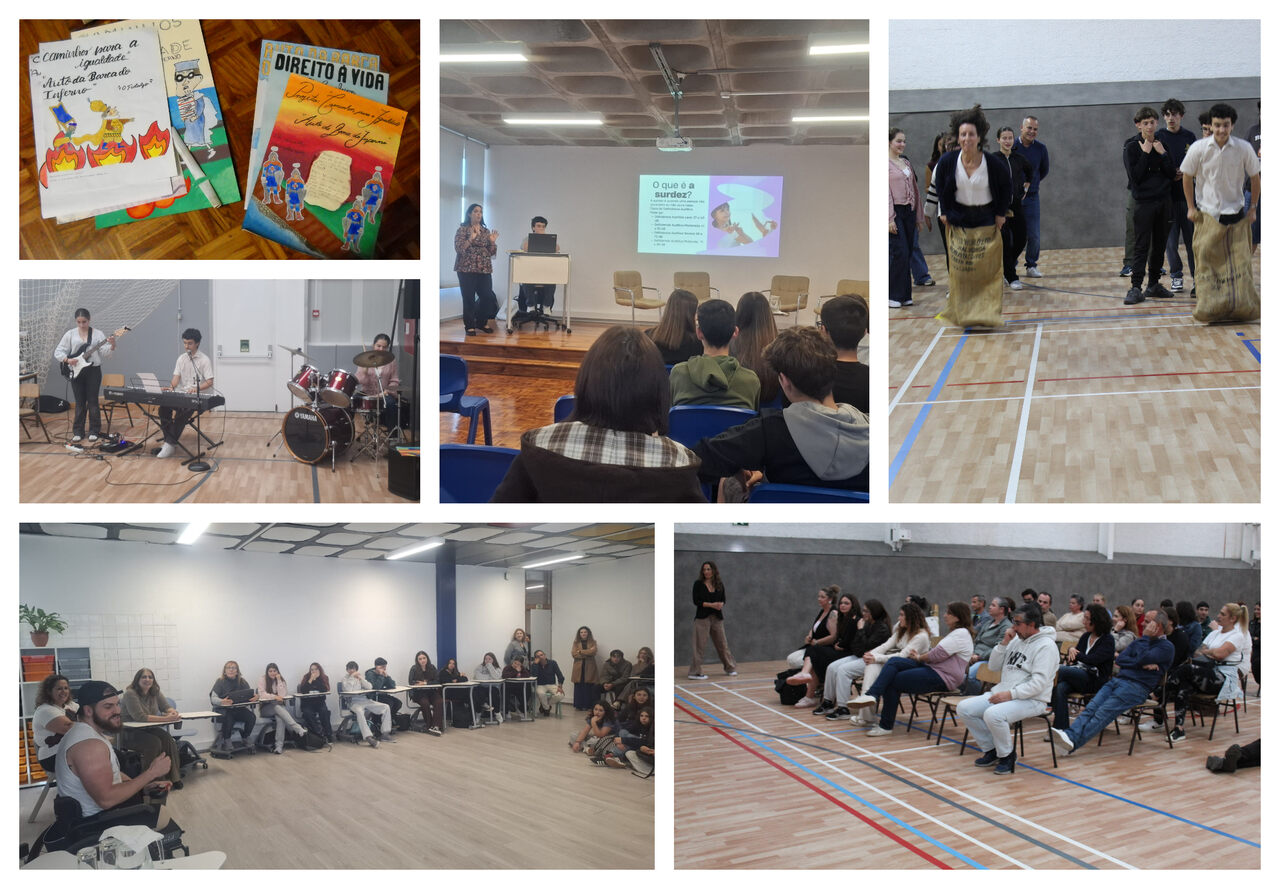 Na quinta-feira, foi proporcionada a atividade viver as diferenças, com duas palestras. A primeira, intitulada Viver com surdez, foi dinamizada pela mãe de um aluno do 9°D, que abordou o tema da inclusão e, na primeira pessoa, partilhou a dificuldade das pessoas com deficiência auditiva em integrarem-se na sociedade. Foi realizado um exercício para os alunos, com a finalidade perceberem como é a vida dos surdos, que foi desempenhada com entusiasmo por ambas as turmas. A segunda palestra, intitulada Viver com a Diferença, contou com a presença do convidado Diamantino, com quem foram discutidas as diferenças entre uma pessoa considerada ‘normal’ e alguém que tem algum tipo de deficiência, bem como as dificuldades e obstáculos que muitos enfrentam. O objetivo da palestra foi ensinar aos alunos como ultrapassar e enfrentar as dificuldades da vida, além de transmitir várias lições de moral que cativaram todos os presentes.